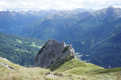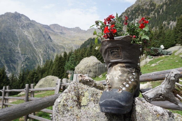 Auch wenn wir unsere Alpenüberquerung noch mit einem Teilstück des Meraner Höhenweg ein wenig strecken konnten, so hieß es am Morgen diesen Tages dann aber dennoch und unausweichlich nach dem Frühstück, ein letztes Mal Schuhe binden und Rucksack schultern und weiterlaufen. Von Giggelberg ging es los in Richtung Schutzhütte Nasereit und weiter zum Schutzhaus Hochgang. Am Schutzhaus Hochgang dann noch eine letzte Einkehr mit wirklich leckeren Brennnesselknödeln. Schweren Herzens ging es weiter über den Hans-Friedrich-Felsenweg zur Bergstation Hochmuth und von dort aus mit der Seilbahn endgültig hinab ins Tal und nun wirklich ans Ende unserer Tour.